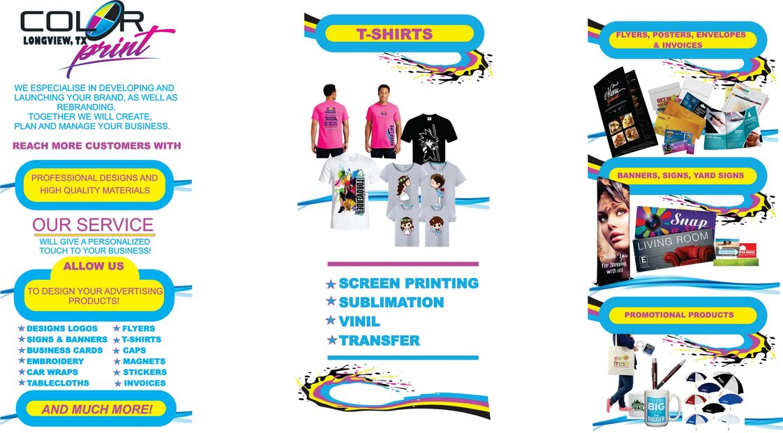 En COLOR PRINT encontrarás todo tipo de Impresión Publicitaria y Evento Social. Tales Como: Business Cards, Banners, Invoices, Magnets, Car Wrap, Stickers, T-shirts (Screen Printing, Embroidery, Transfer and Vinyl), Custom Soccer Uniforms, Wedding Invitations, and More !